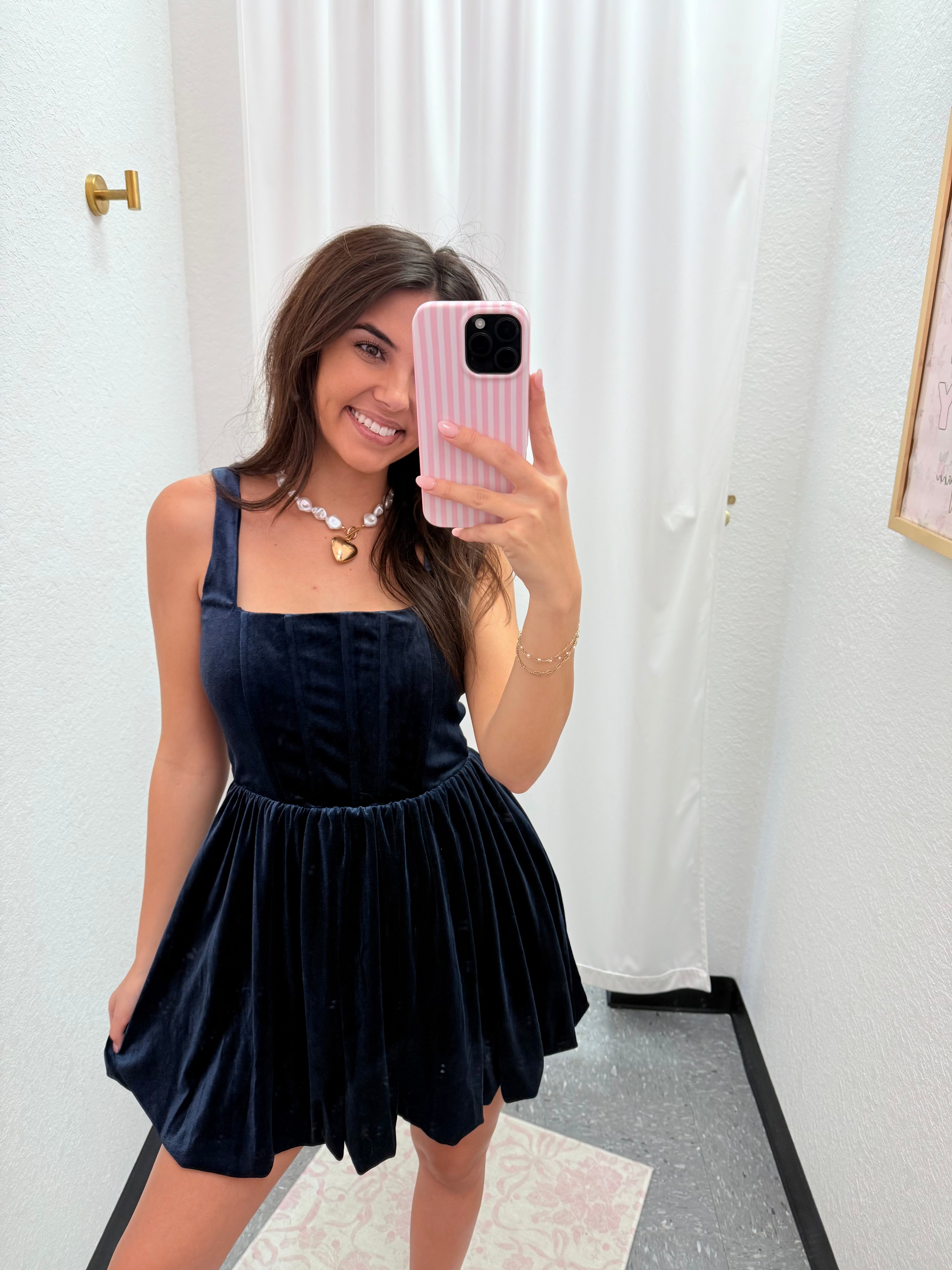Navy Corset Velvet Dress