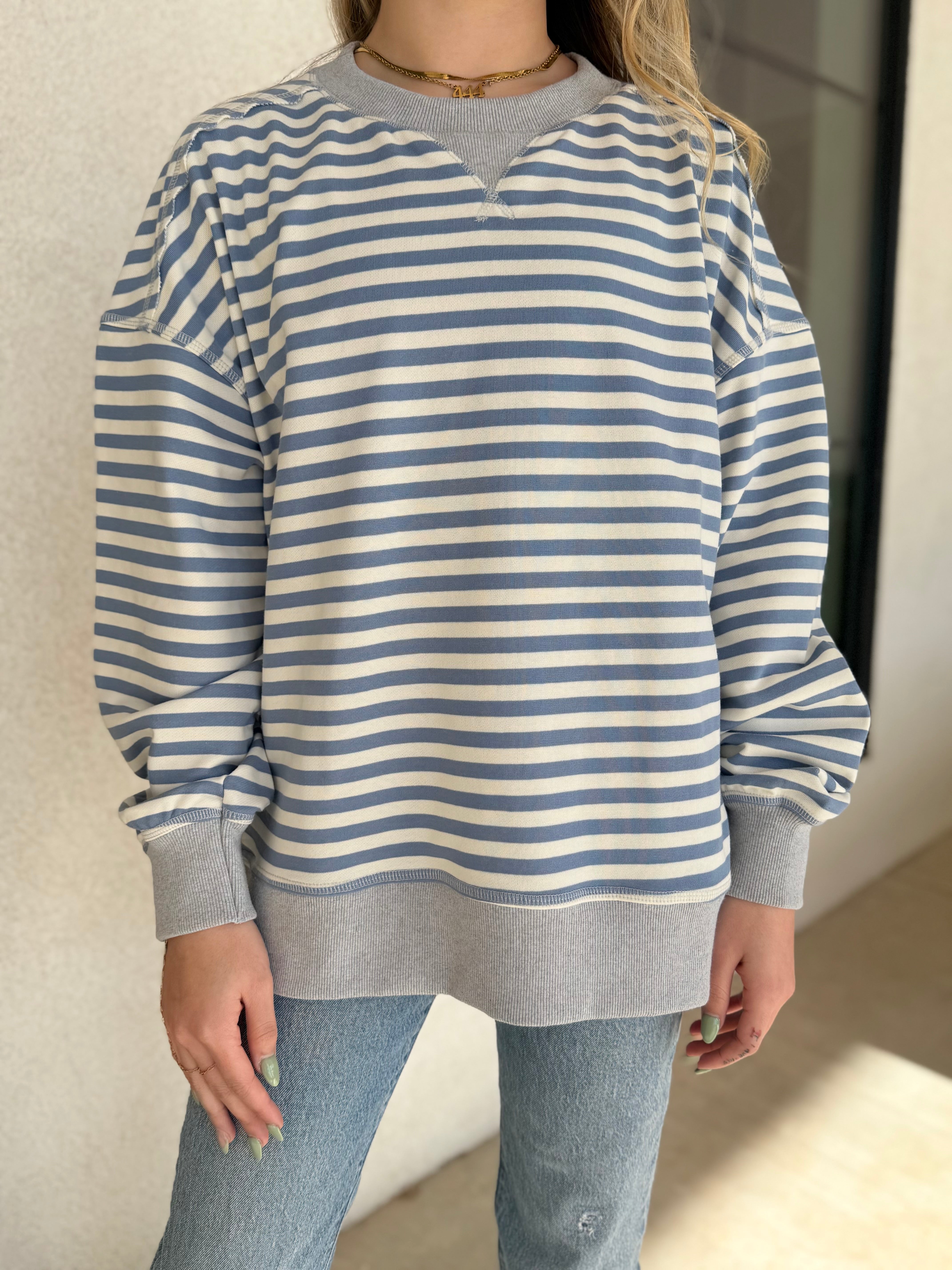 Blue/Cream Oversized Sweater