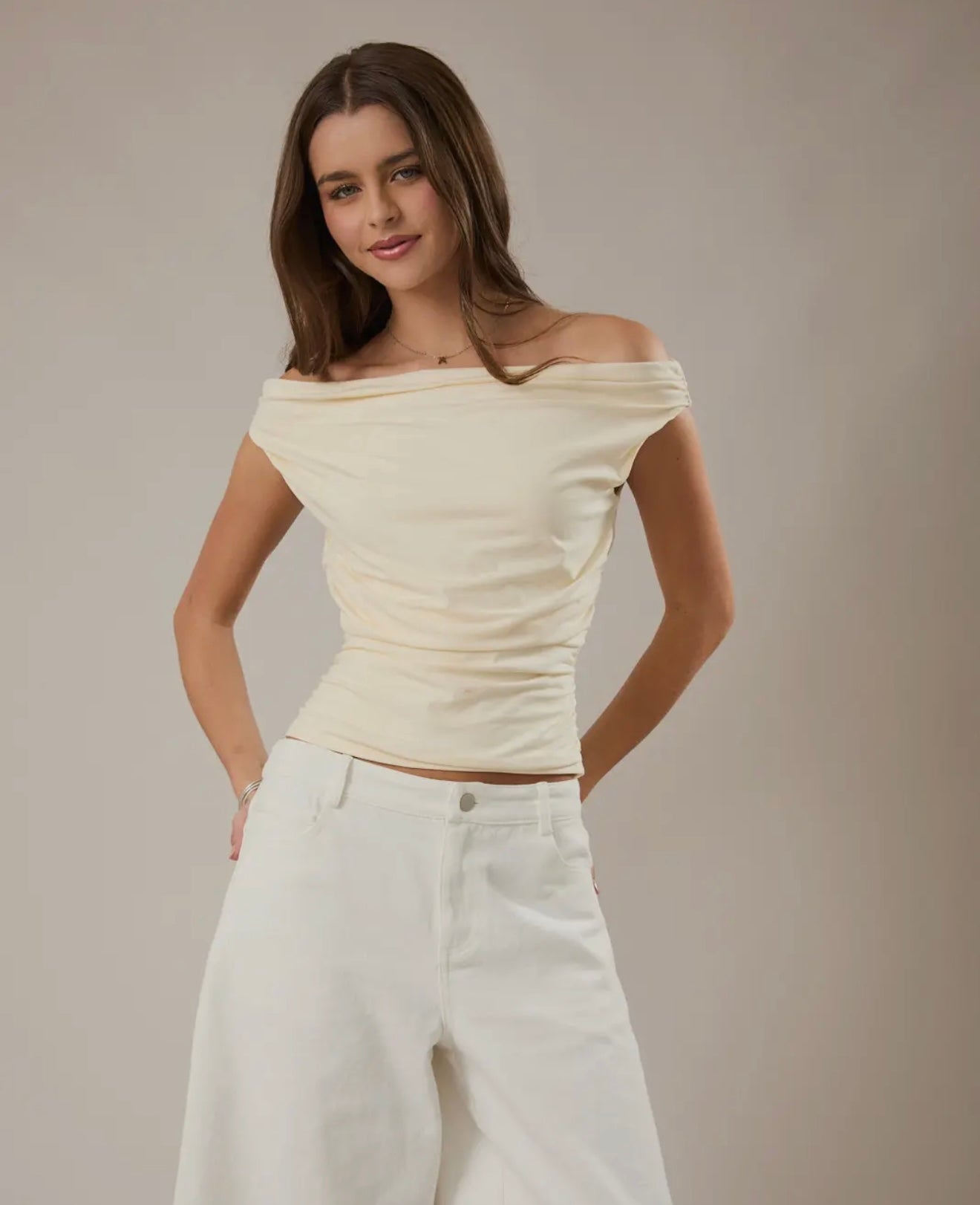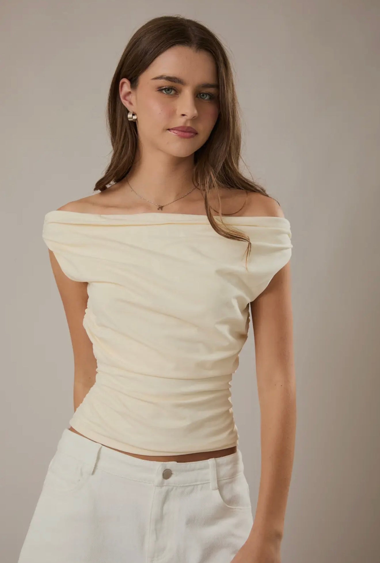 Light Yellow Off the Shoulder Top